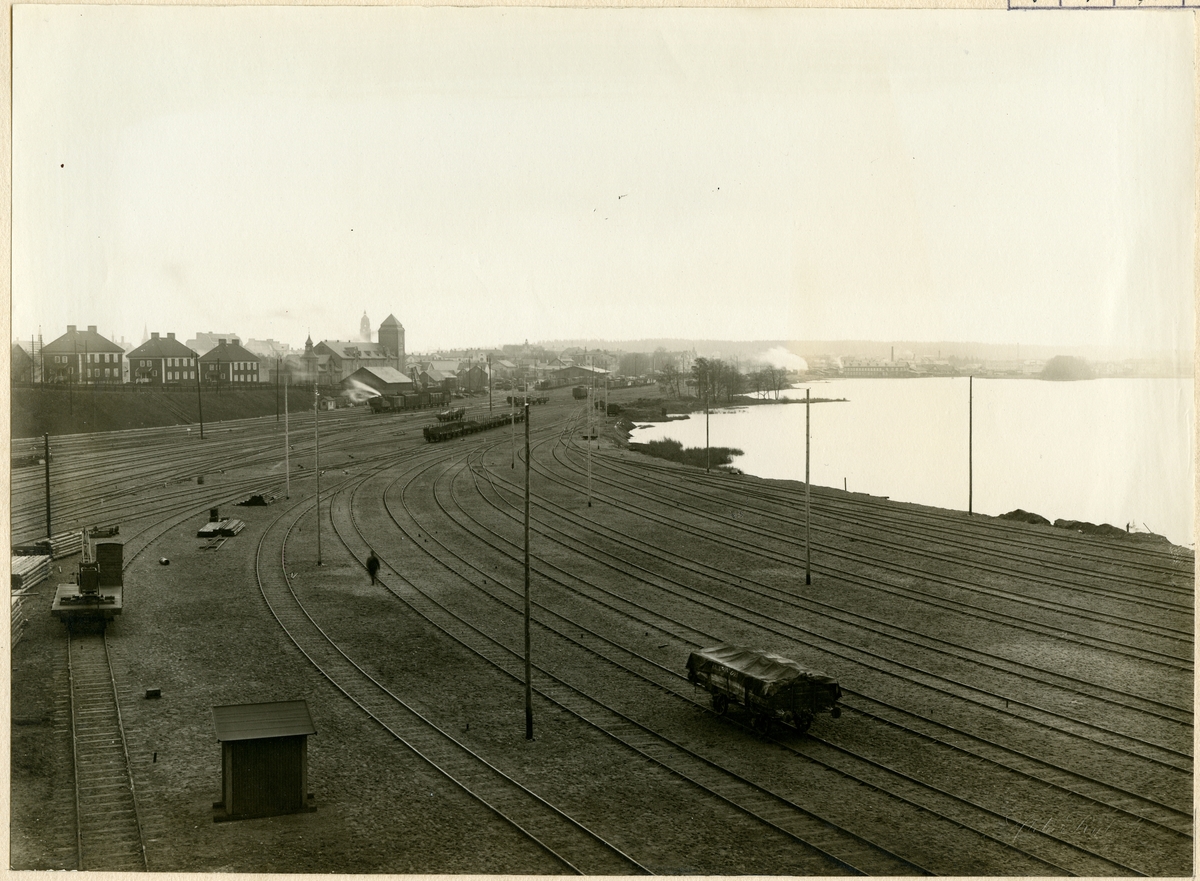 Nässjö, utsikt över godsbangården utvisande utfyllnads och spårarbeten år 1917.