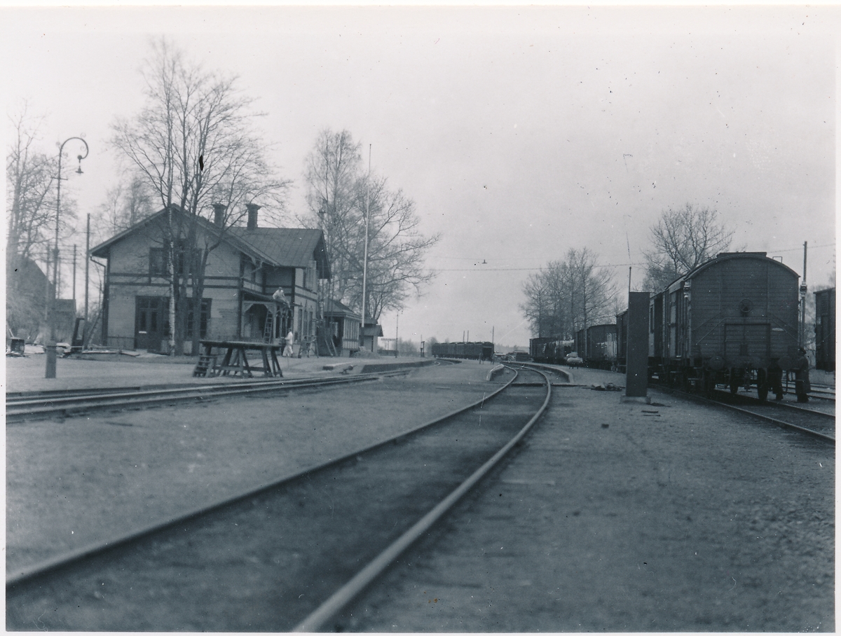 Titel: Bangård med vagnar.
