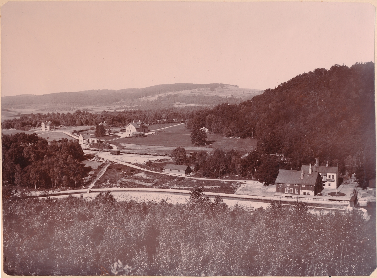 Titel: Vy över Oskarström. Järnvägsstationen syns till vänster i bild.