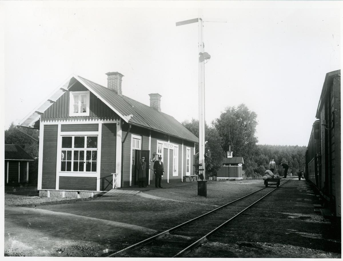 Pålsboda - Finspångs Järnväg, PFJ, latsning eller losning av säckar, det finns ett dass bakom stationen.