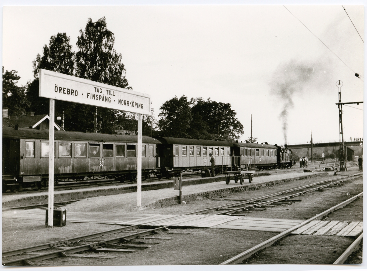 Statens Järnväg, SJ, SJ N4p 3161, personvagnar SJ Bop 807, 835, 815. Persontåg i Pålsboda. Utflyktståg för Svenska Järnvägsklubben.