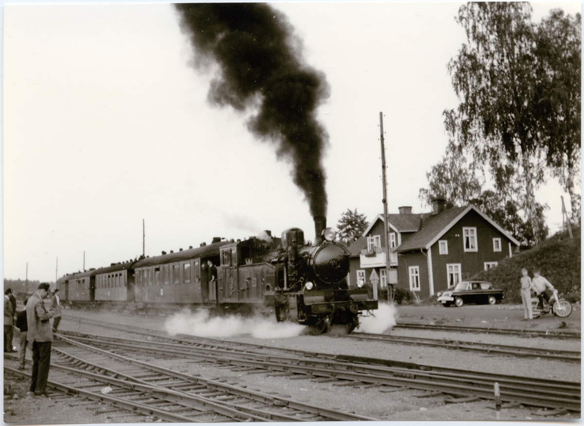 Statens Järnväg, SJ, SJ N4p 3161 Tanklok smalspår. Persontåg i pålsboda. Utflyktståg för Svenska Järnvägsklubben.