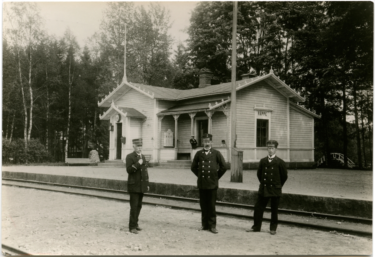 Titel: Räppe station. Till vänster Stins E.J Dahl.