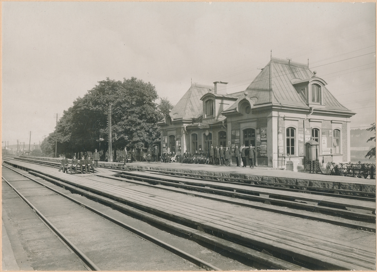 Titel: Personalen vid Saltskog stationen när trafiken nedlades där och överflyttades till Södertälje.