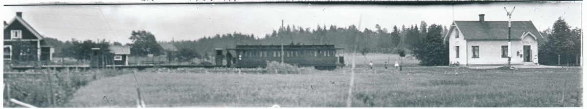Titel: Hållplats anlagd 1917. Envånings reverterat stationshus. Mekanisk växelförregling.