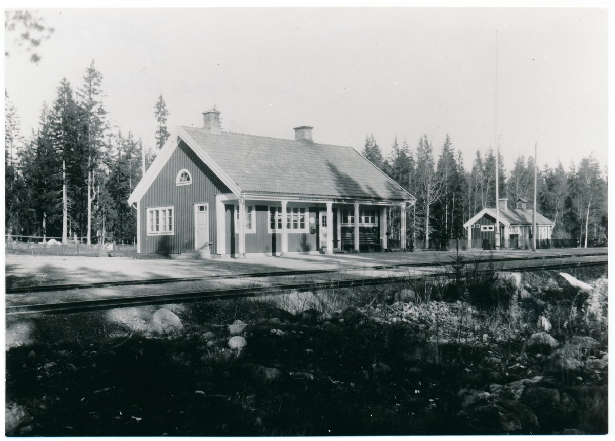 Station anlagd 1922. Envånings stationshus i trä. 1942 blev nedgraderad till håll- och lastplats. Den blev nedlagd 1963.
