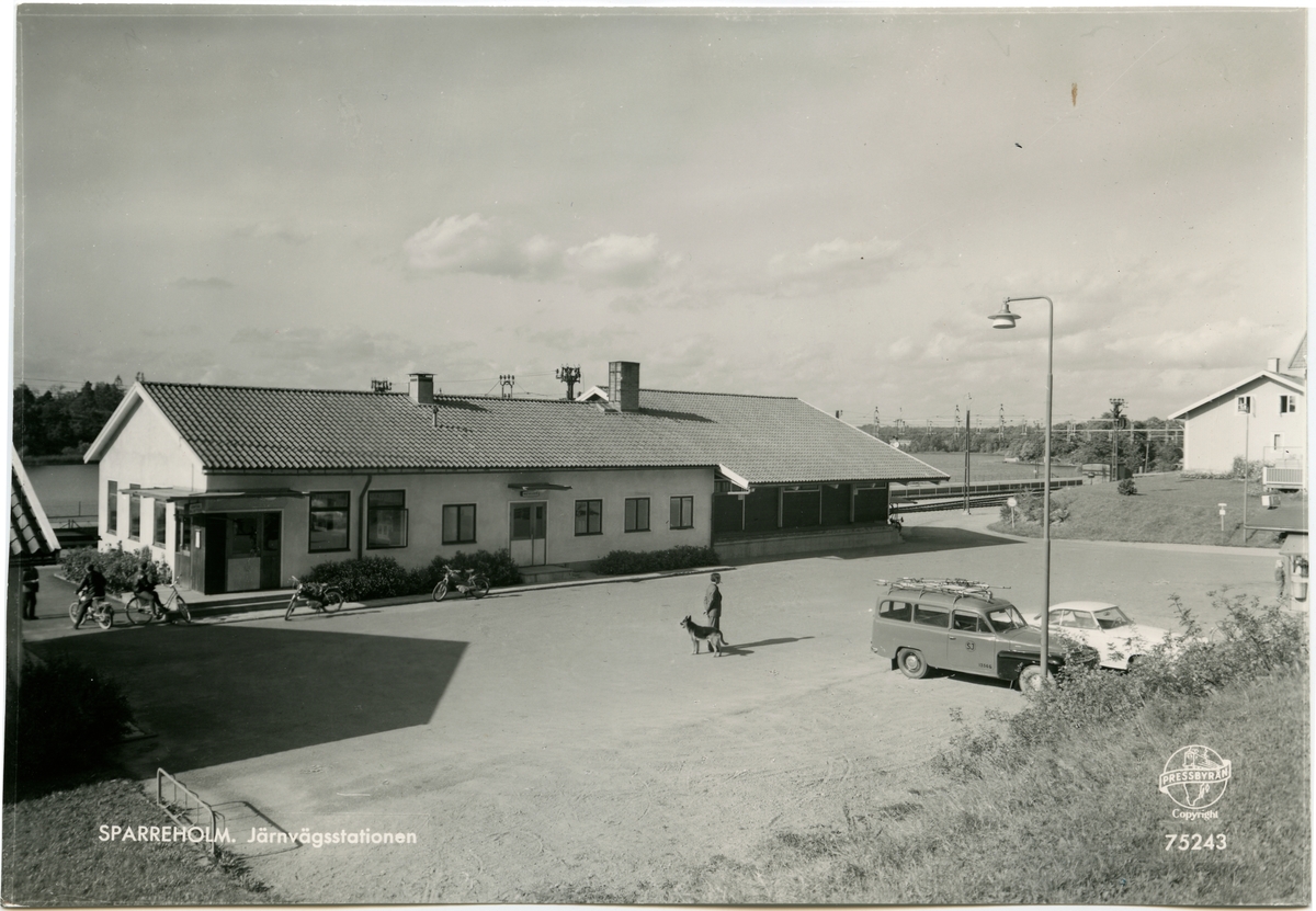 Sparreholms station. Statens Järnvägar, SJ. Det nya stationshuset byggdes 1955.