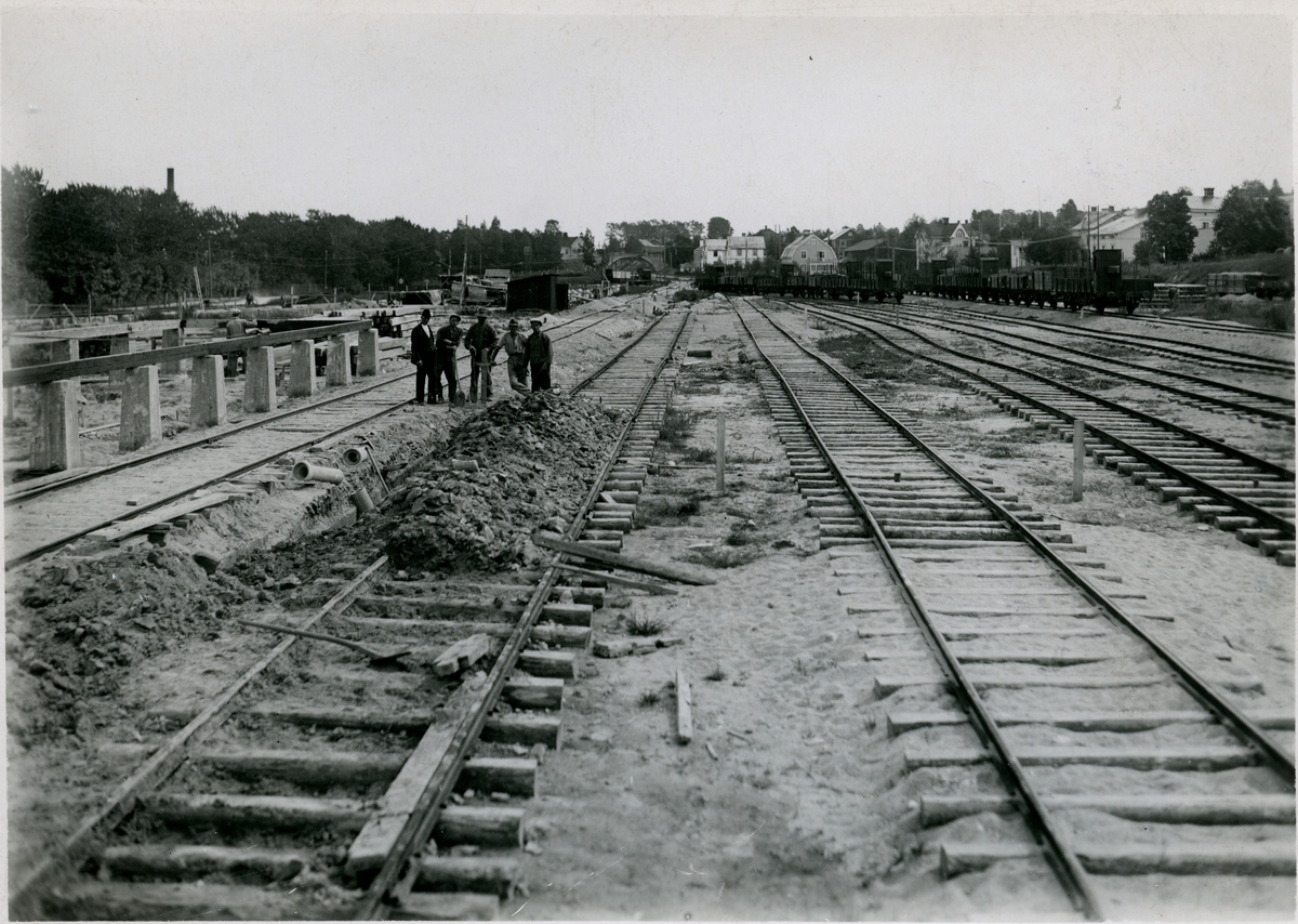 Titel: Banarbete på bangården vid Sundsvall Central järnvägsstation.