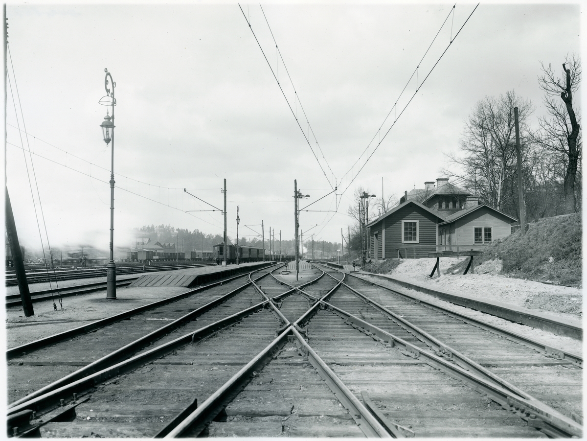 Statens Järnvägar, SJ, bangård med en massa vagnar och lokal för arbetare.