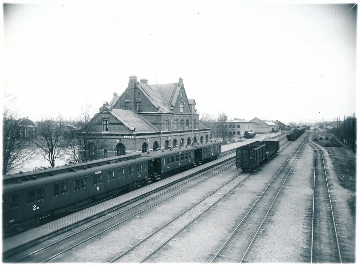 Umeå station. Klockan är 13.43 och tågsättet till persontåg Pt 2774 med avg 13.52 växlas samman.