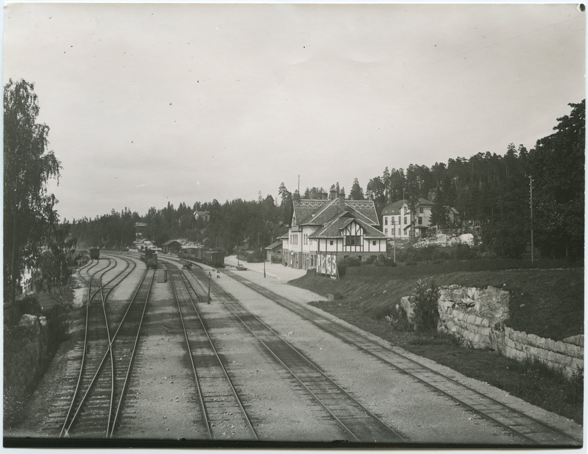 Titel: Vy över stationsområdet från infarten till bangården.