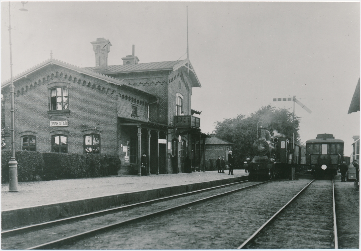 Önnestads station. Kristianstad-Hässleholms Järnväg, CHJ. Banan invigdes 1865. Övergick till Statens Järnvägar, SJ 1944. Fick eldrift 1955.