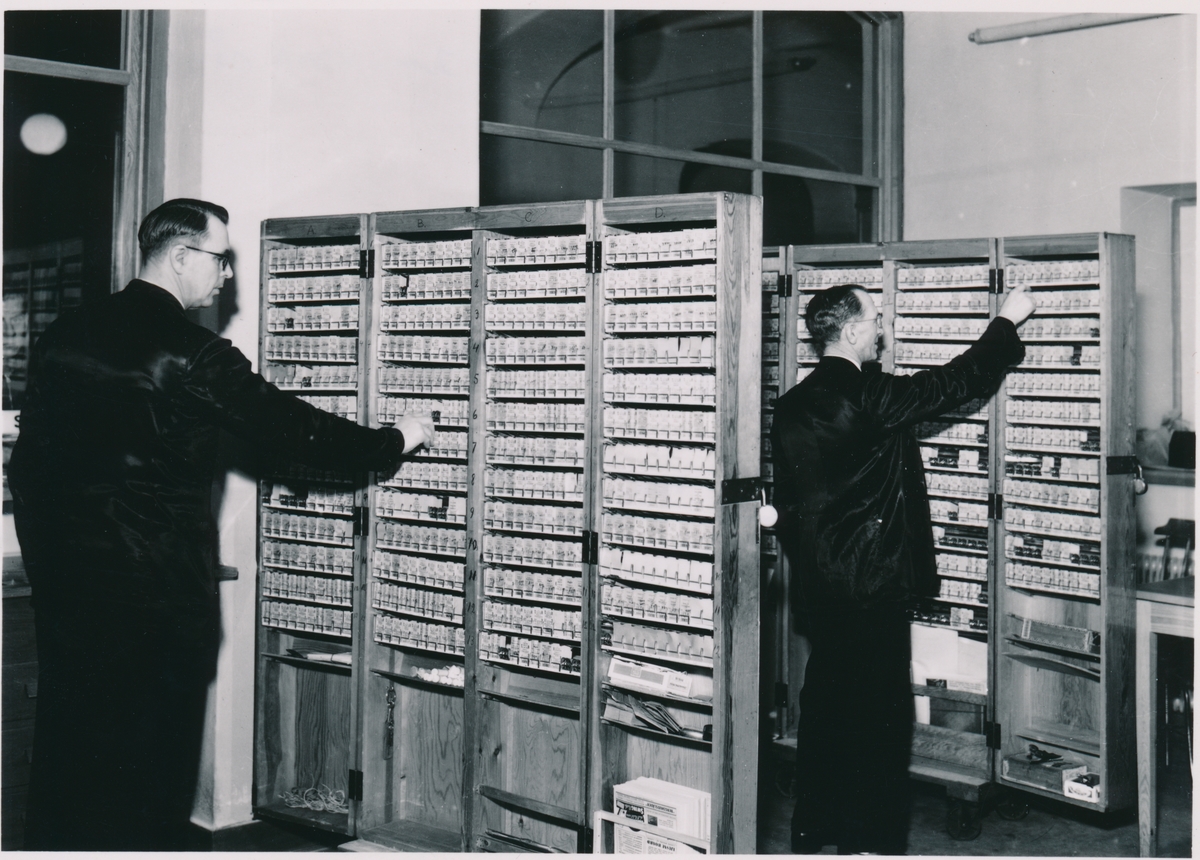 Örebro. Statens Järnvägar, SJ. Biljettskåp på biljettexpeditionen.
