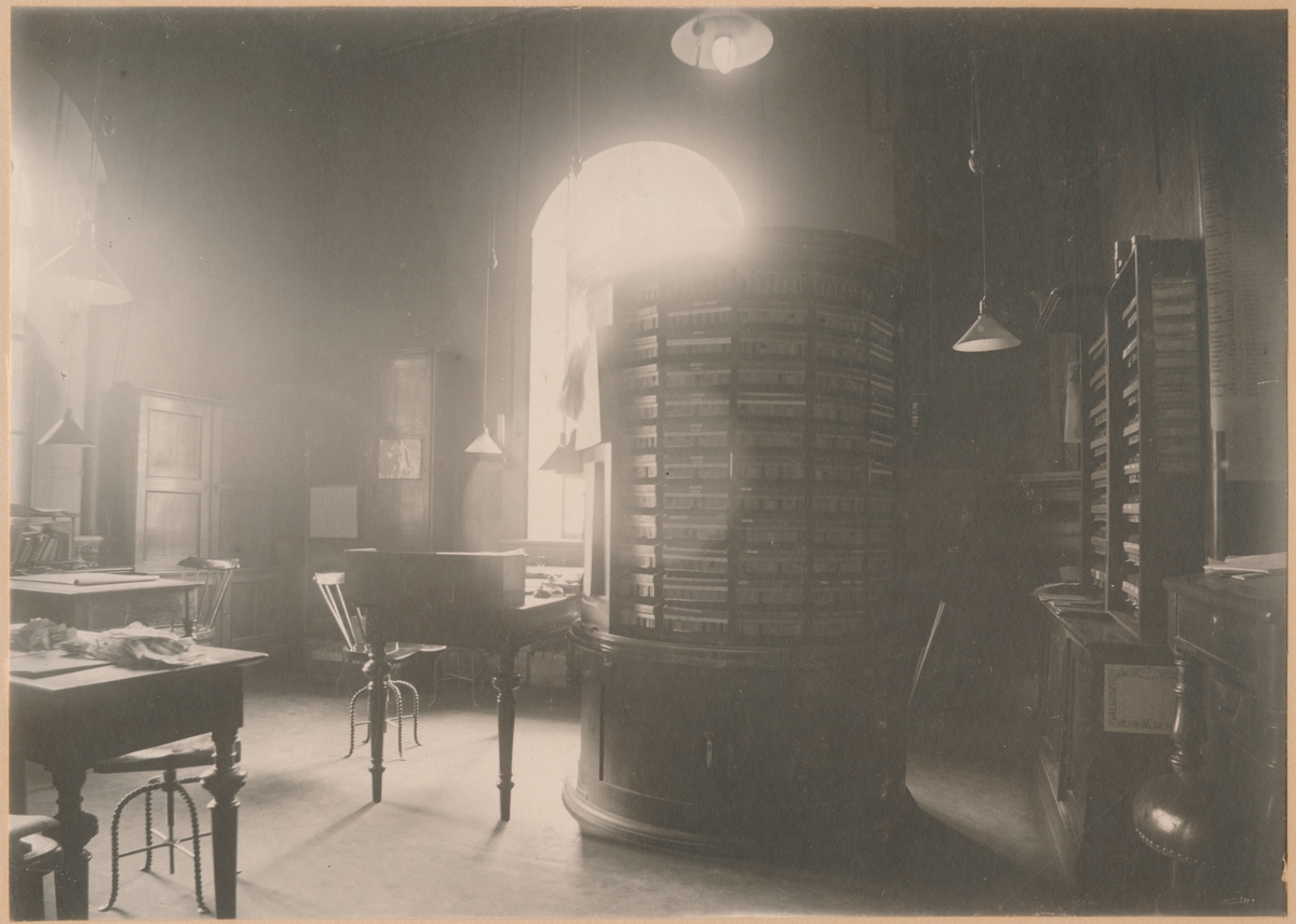 Titel: Biljettexpeditionen vid Stockholms Centralstation omkring sekelskiftet 1900.