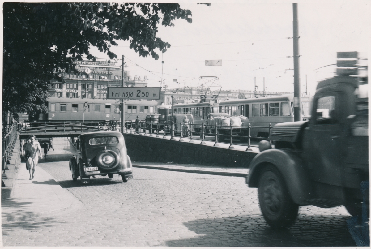 Stockholm. Gatubild över tegelbacken. På linjen mellan Stockholms C och Riddarholmen. Spårvagn på linje 11, Änsbylinjen.