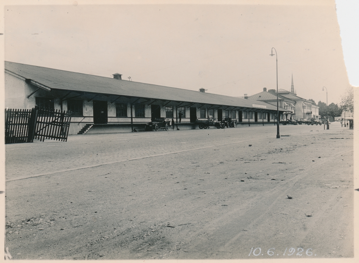 Ilgodsmagasinet, fasaden mot Vintervägen. St Johannes kyrka botterst i bild.