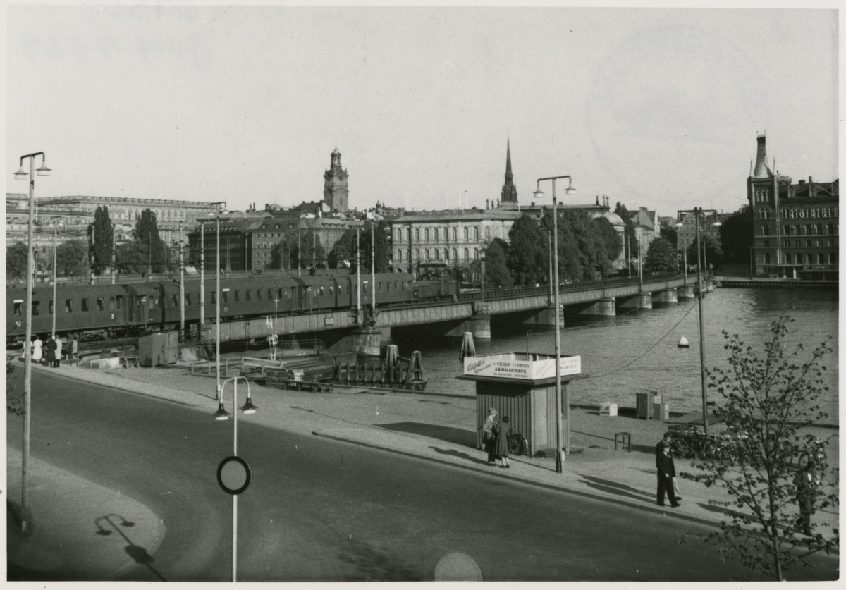 Stockholm, utsikt över Centralbron, Kungliga slottet i bakgrunden. Linjen mellan Stockholms C och Riddarholmen.