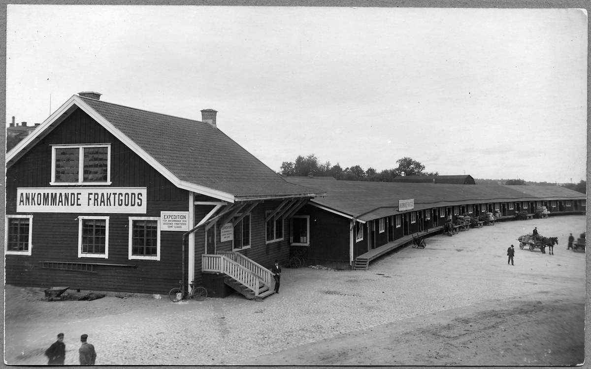 Titel: Ankommande godsmagasin vid Stockholm Norra.