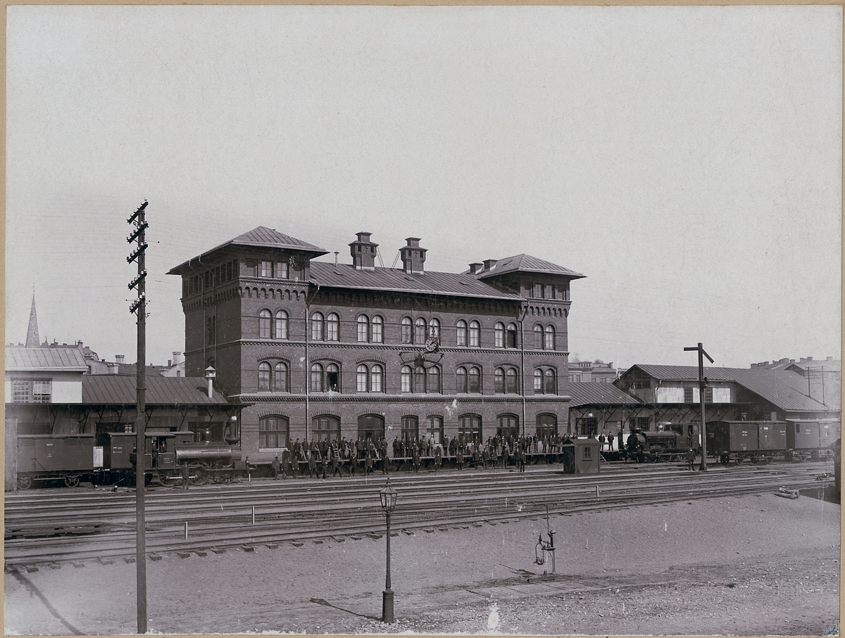 Titel: Stockholm Norra 1895. Sadeltanklok SJ Oc 386. SJ Vx 288 "Räfen".