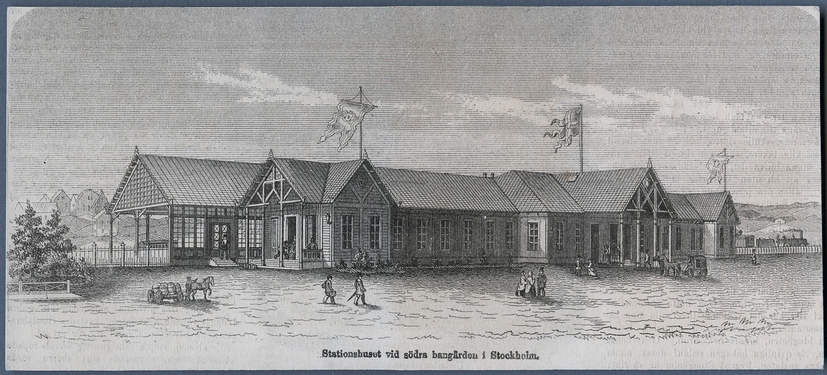 Träsnitt av Södra Station, Stockholm. År 1860.