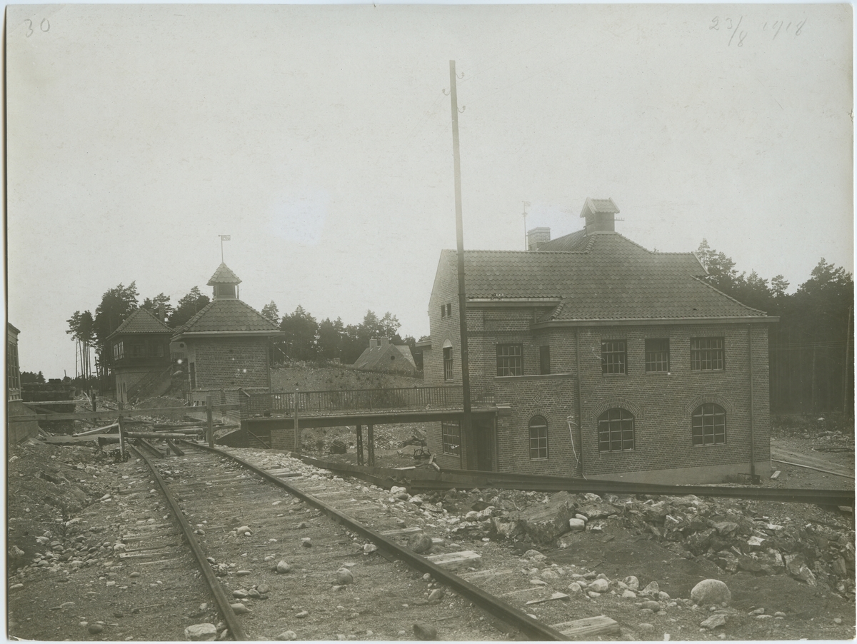 Byggnation av järnväg vid Södertälje Södra station. Statens Järnvägar, SJ.