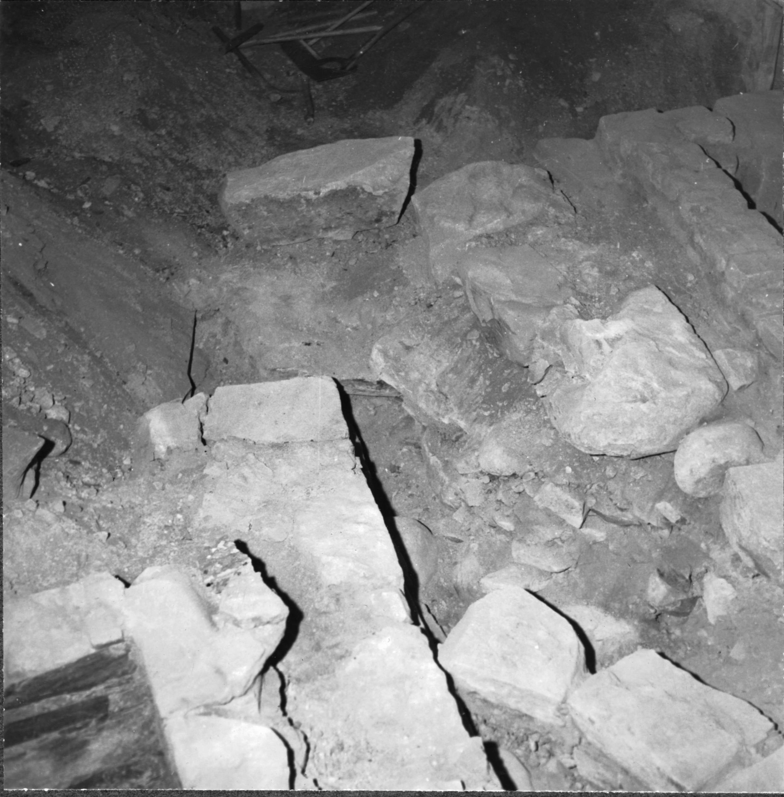 Utgrävning. Det romanska korets nordöstra hörn från sydväst.