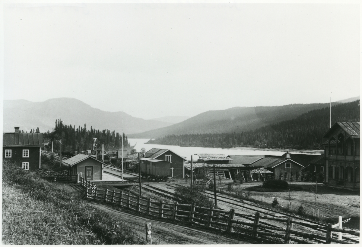 Tegefors hållplats med Åreskutan och Åresjön. Statens Järnvägar, SJ.