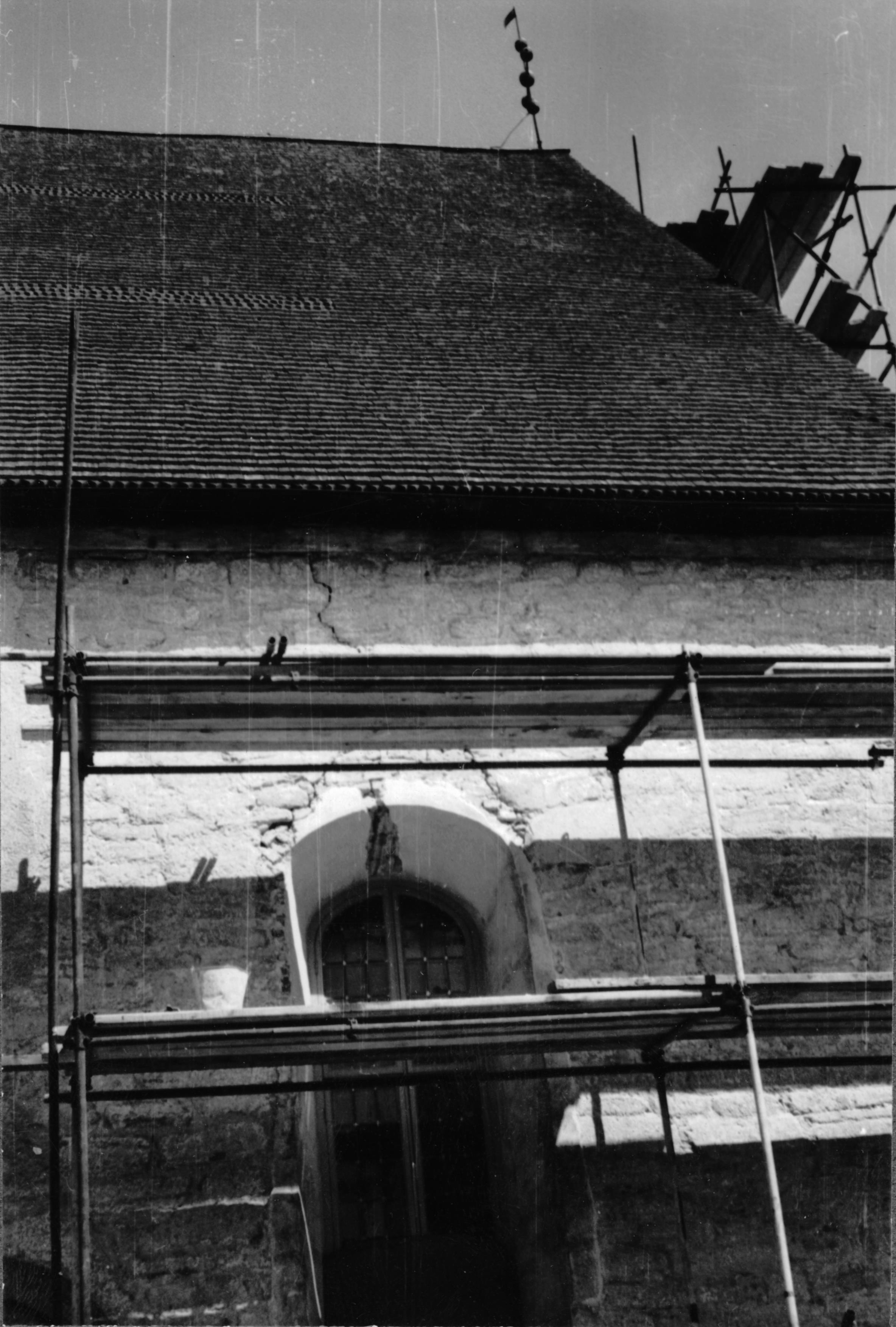 Södra fasaden, fönstret längst åt öster med spår av äldre gotiskt fönster.