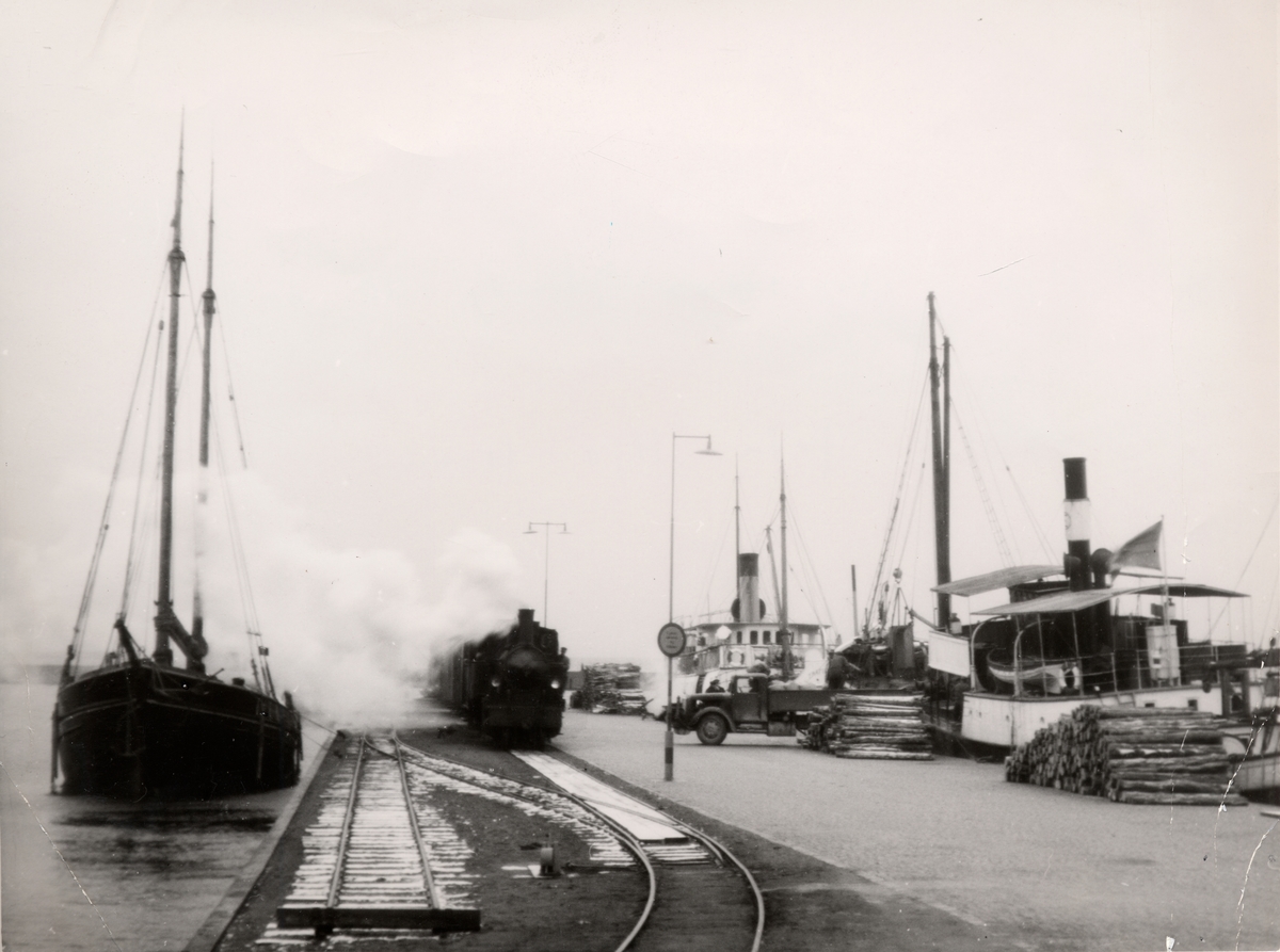 Titel: Hjo hamn. Hjo-Stenstorps Järnväg 70 år