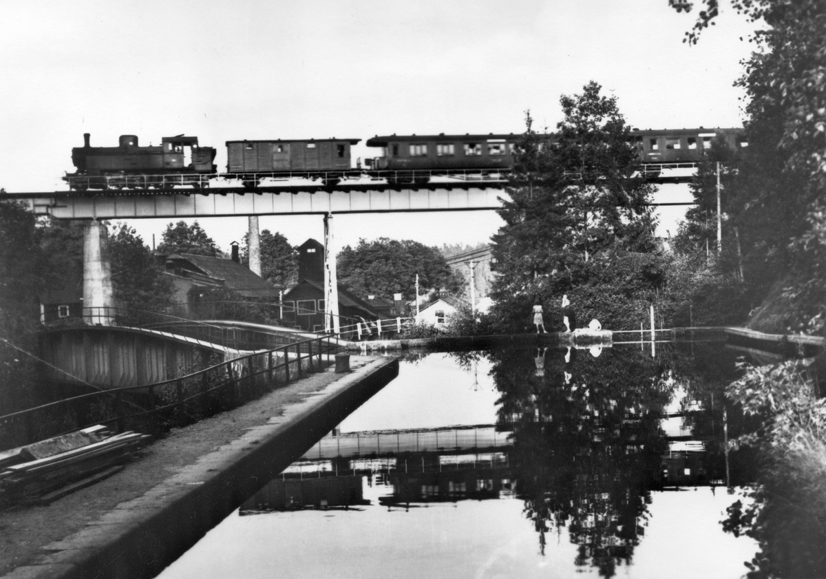 Titel: Håverud akvedukt med persontåg och Y3 lok mot Bengtsfors. BJ Y3