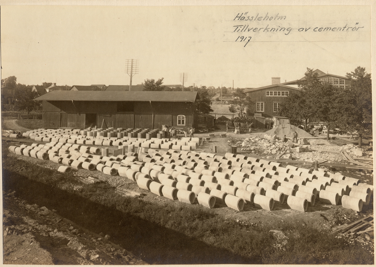 Titel: Tillverkning av cementrör vid vägbygget.