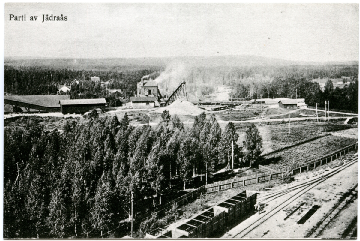 Titel: Jädraås masugn sett från vattentornet. Masugnen uppfördes 1856-57.