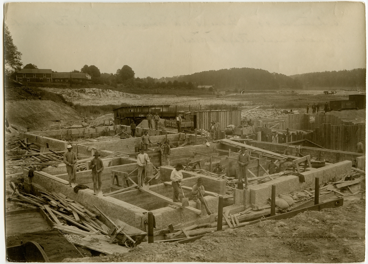 Titel: Bygge av gasverk vid Frösunda 1916. SJ hade egen gastillverkning för belysning i vagnarna.