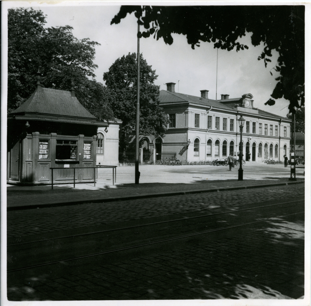 Titel: Karlskrona järnvägsstation från gatusidan.
