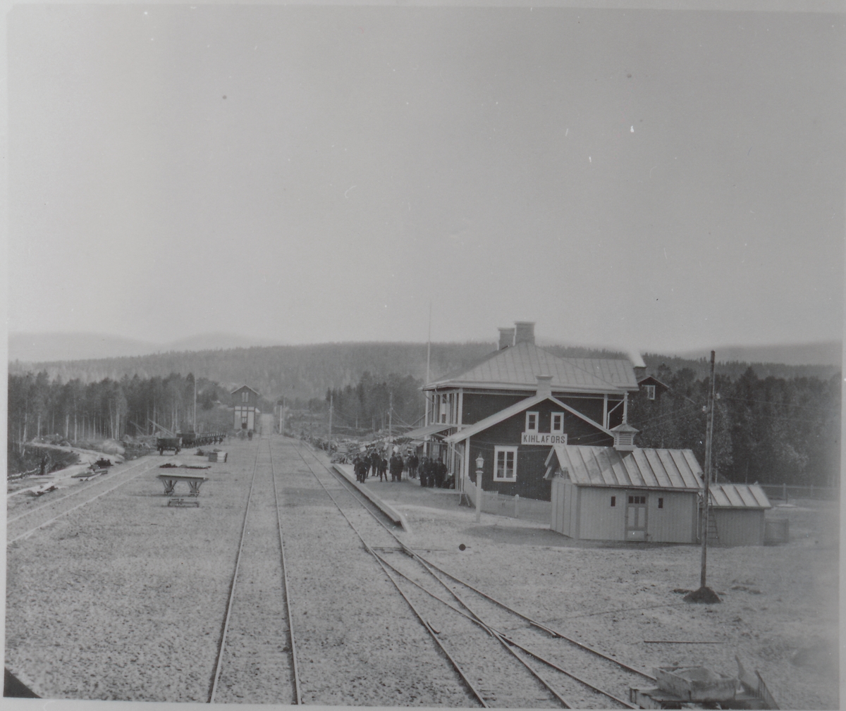 Titel: Kilafors station med gamal stavning på stationshuset.