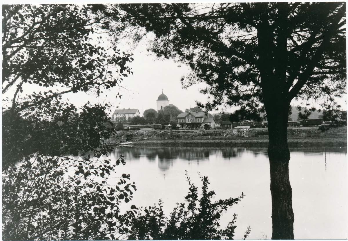 Titel: Kimstad station sedd från andra sidan Motala ström.