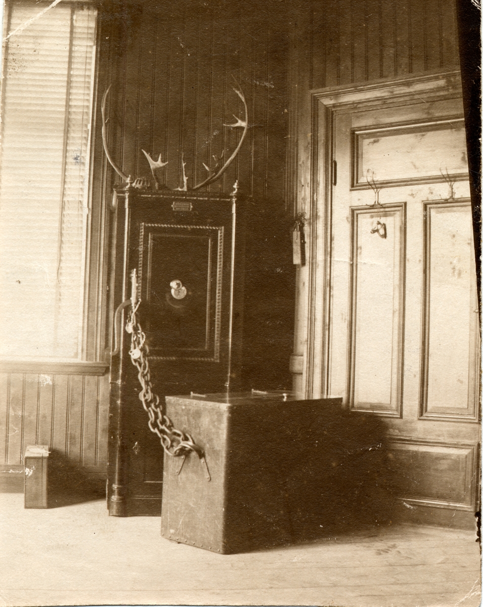 Titel: Fastlåst remisskista vid godsexpeditionen i stationshuset.