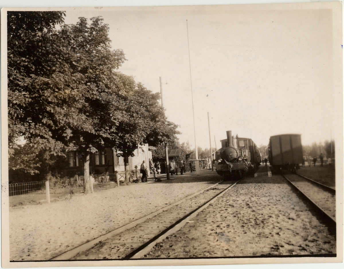 Titel: Konga station. Det vänstra tåget är på väg mot Ronneby och det högra till Tingsryd.