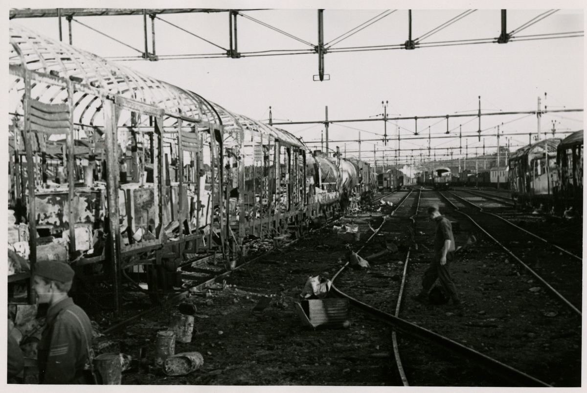 Titel: Avesta Krylbo station vid explosionen av ett tyskt ammunitionståg.