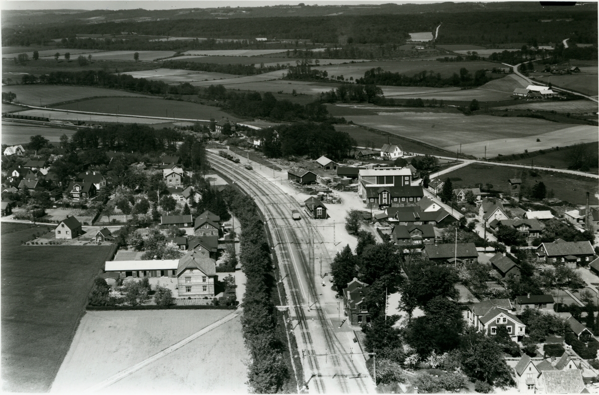 Flygbild över Kågeröd järnvägsstation, och samhälle.