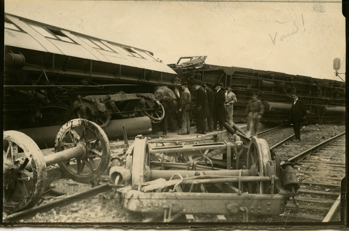 Tågolycka i Malmö söndagen den 1/11 1925, tåg 11 vid ingång på Malmö station. A L Thulin dödades och två skadades.