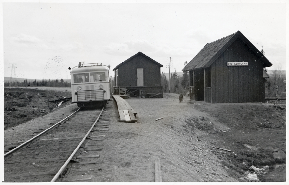 Titel: Hilding Rälsbuss Yd står på hållplatsen Luspebryggan.