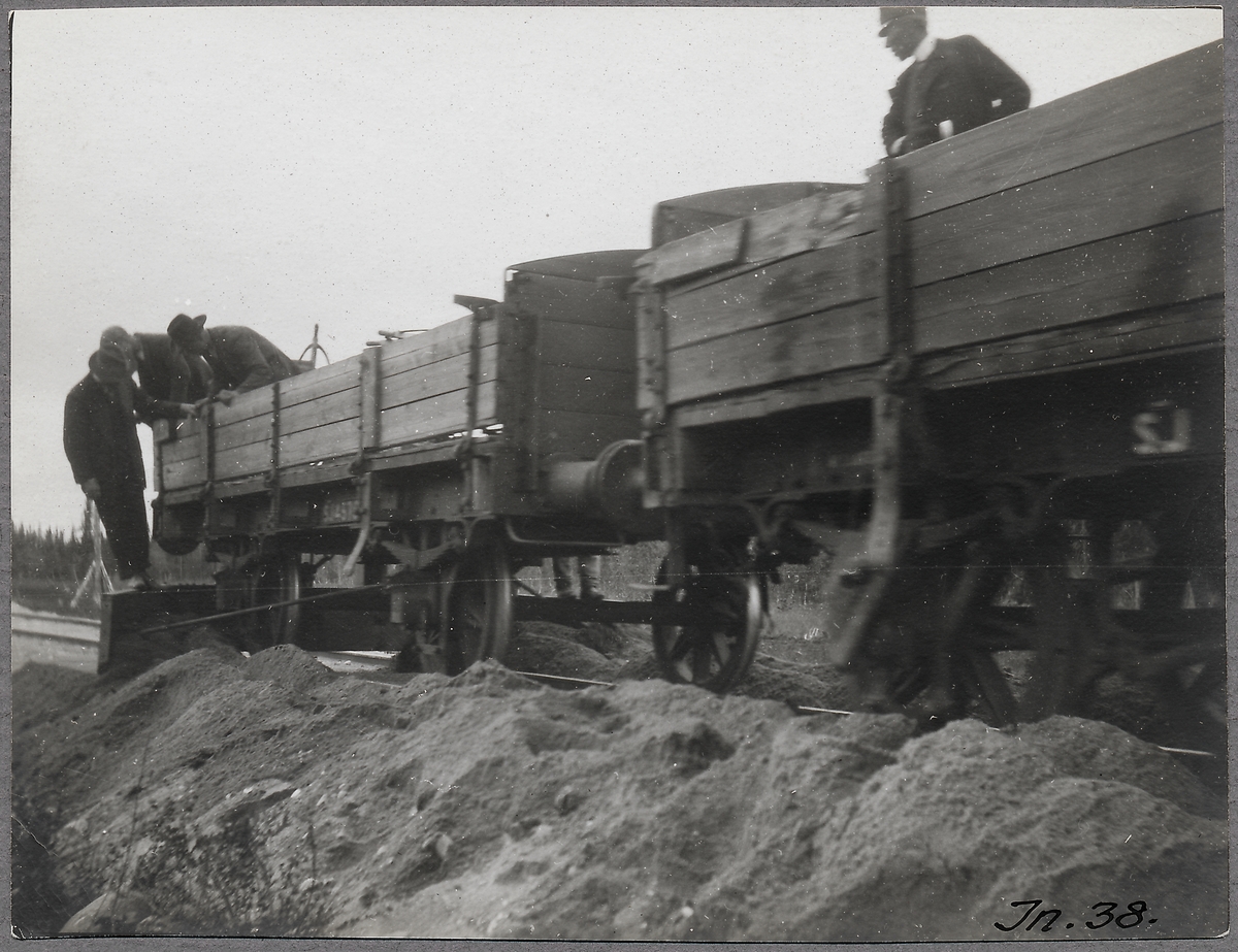 Titel: Användning av grussläpa vid bellastningsarbetet sommaren 1912. Gällivare-Porjus.
