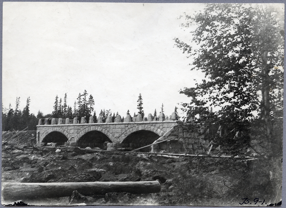 Stenvalvsbro under byggnad över Lillån på blivande bibanan mellan Lövlidens station och Holmsele hamn vid Malgomajsjön.