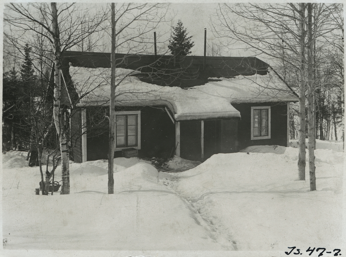 Text på bilden - Barack för tolv män, äldre typ. Provisoriska byggnader under Inlandsbanans byggnadstid.