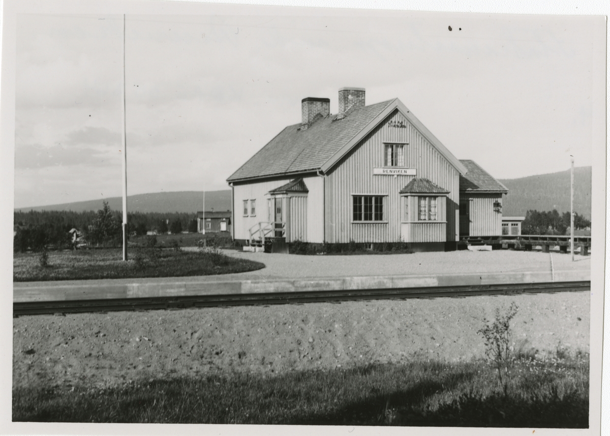 Hållplats anlagd 1933. Envånings stationshus i trä, sammanbyggt i vinkel med godsmagasinet