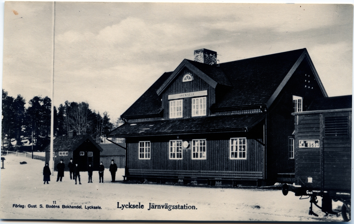 Titel: Godsvagn och personal vid Lycksele station. SJ G 8592