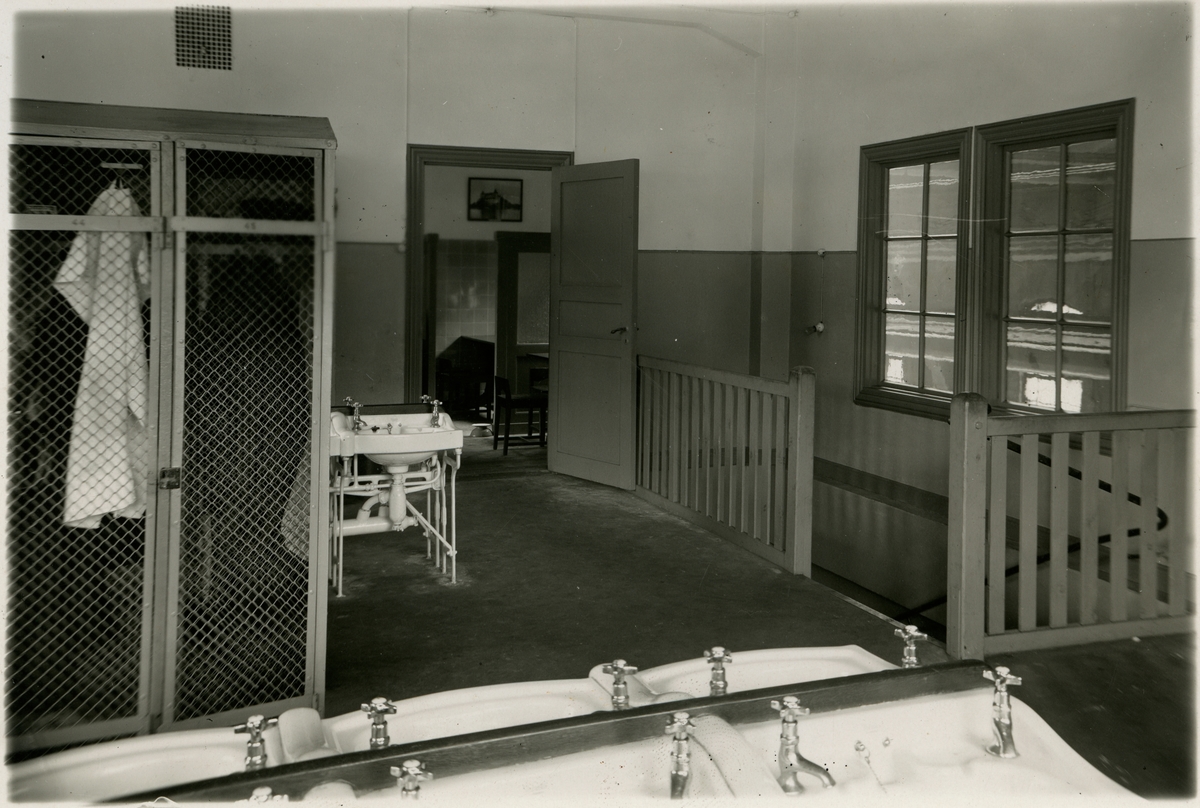 Titel: Verkstadsarbetarnas tvätt- och skåprum vid driftverkstaden i Hagalund Övre.