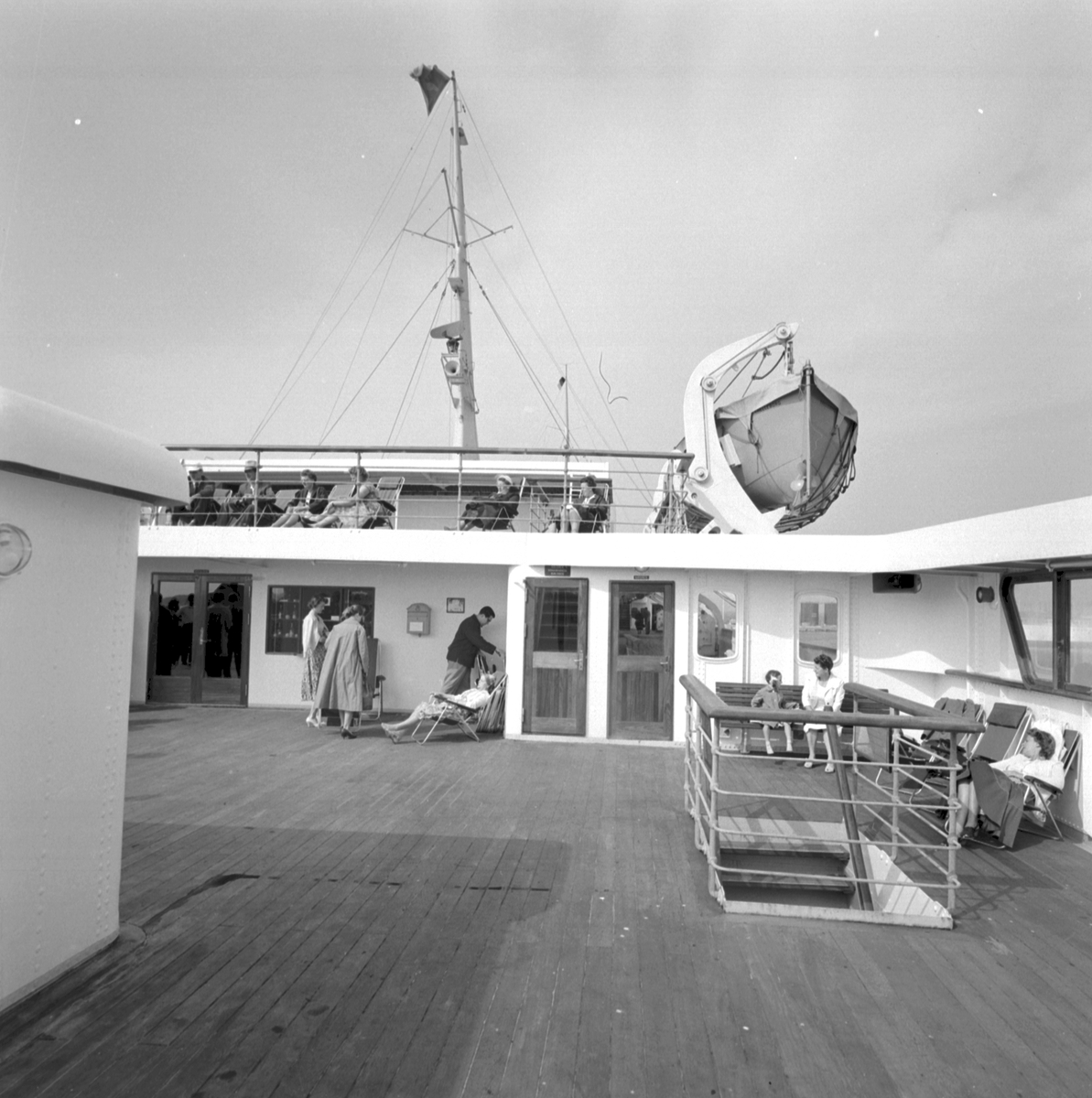 Titel: M/S Trelleborg, resande i vilstolar på soldäck