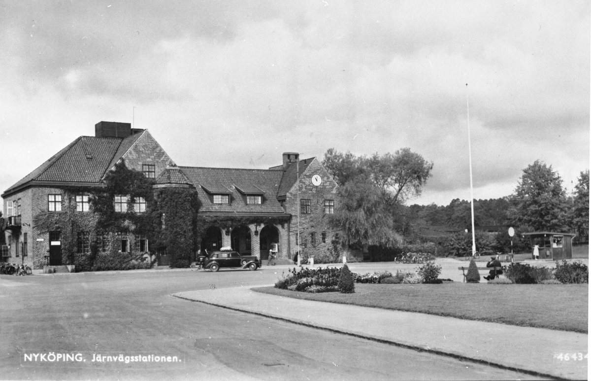 Titel: Centralstationen. Det finns en busshålplats där vid stationen till höger i bild.